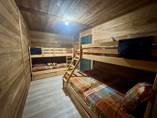 Un dortoir avec un lit simple superposes sur un lit double (140 x 200) et