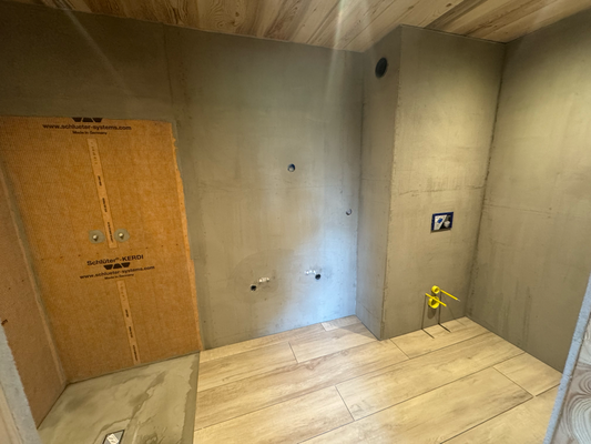 1 chambre avec salle de douche toillette vasque et un coin nuit avec un lit superposes