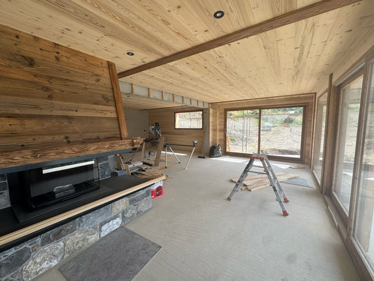 Une grande piece à vivre avec cheminée cuisine ouverte sur sejour